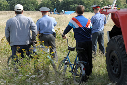 图为飞机坠毁现场周边警方已经拉起安全线。