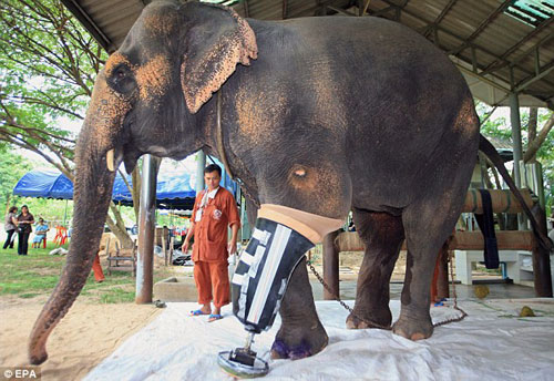 组图:泰国大象踩地雷受伤接上“新腿”(2)