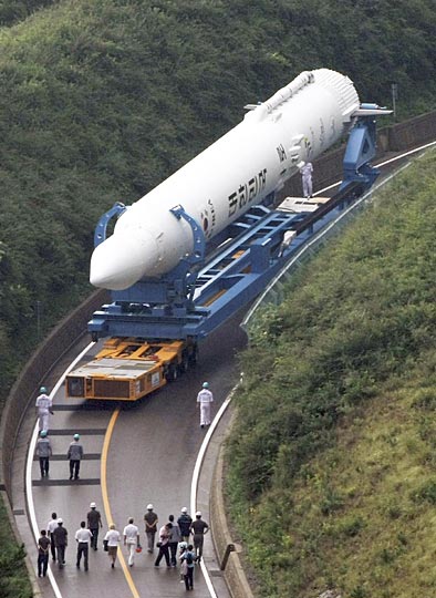 韩国首枚运载火箭“罗老号”(KSLV-I)运往位于全罗南道高兴郡外罗老岛的罗老宇航中心。