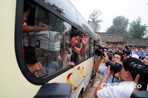 8月16日,河南省淅川县滔河乡姬家营村的62户231名移民登上客车,离开了祖祖辈辈生活的故乡,举家迁往许昌县榆林乡姬家营移民新村。据了解,今年9月10日以前,淅川县将有1.06万移民同姬家营移民一样迁移到他乡。丹江口库区移民分属湖北、河南两省,其中河南库区移民全部集中在淅川县。按照国务院的批复,首批10个移民安置试点涉及淅川县8个乡镇,10个移民村,69个村民小组,2537户10627人。规划安置区涉及平顶山、漯河、许昌、郑州、新乡、南阳等6个省辖市,10个县市区,建设移民安置点12个。中新社发 崔培林 摄