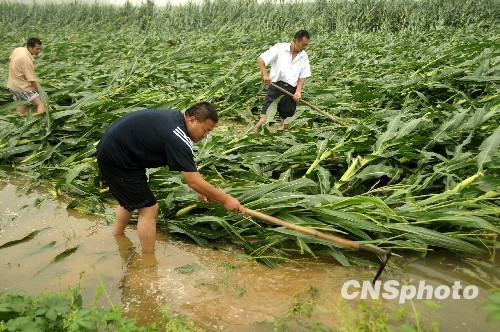 8月18日,枣庄市山亭区遭遇风暴灾后的玉米地如同碾过一般。当日凌晨,山东省枣庄市出现风暴大雨灾害,最大降雨量达141毫米,造成农作物受灾面积达8400公顷。灾情发生后,枣庄山亭区迅速展开抗灾自救工作,力争把损失降到最低。