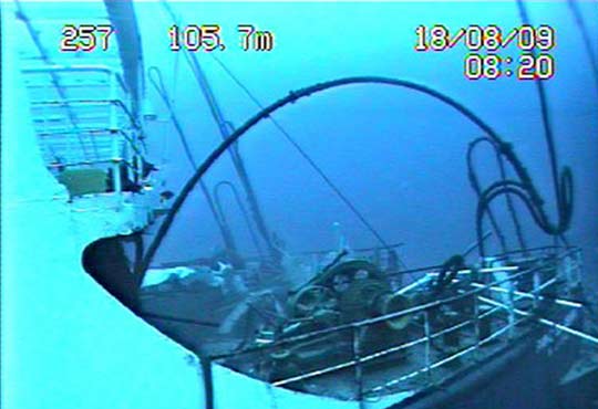 在诺穆卡群岛西南11海里的110米深海底的“阿斯卡公主”号渡轮残骸。