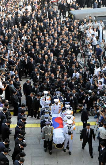 图:韩国前总统金大中灵柩运往国会灵堂(3)——中新网