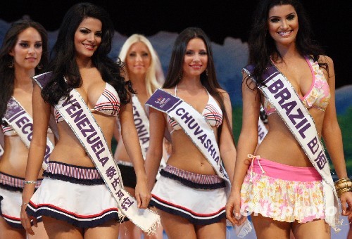 8月20日晚,正在河南参加2009国际旅游小姐冠军总决赛的各国佳丽,在驻马店市举行最具魅力小姐单项奖颁奖晚会。中新社发 钱兴强 摄