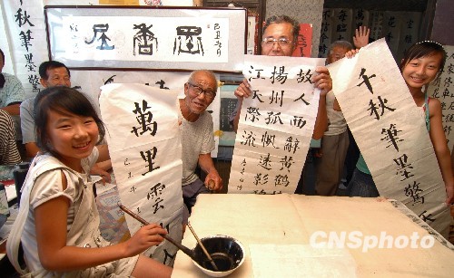 8月20日,辽宁省北宁市富屯乡新立村地处深山,却是全国书画之乡,山村里到处飘着墨香,全村男女老少对书法、中国画情有独钟,人人能写会画,村民们的作品多次参加全国、省、市书画展并获奖,被人称为“书画村”。中新社发 李铁成 摄
