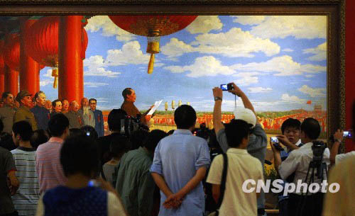 8月21日,“向祖国汇报――新中国美术60年”巨型大展在北京开幕,展览遴选名家名作共计687件,囊括了1949年新中国成立至今的大部分重要创作成果。中新社发 郑雄增 摄
