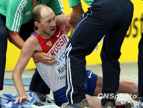 当地时间8月21日中午,第12届国际田径联合会世界田径锦标赛男子50公里竞走比赛在柏林市中心的勃兰登堡门举行,俄罗斯名将基尔徳亚-普金以3小时38分35秒的成绩获得冠军,中国有3名选手参赛,分别名列第11、15、25位。至此,本届世锦赛三项竞走比赛全部结束,俄罗斯选手囊括全部金牌。中新社发 任晨鸣 摄