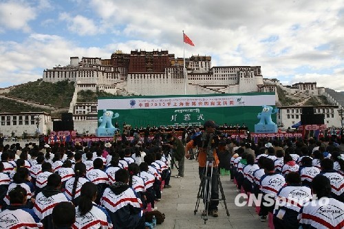 8月22日上午,中国2010 年上海世博会西藏宣传周在布达拉宫广场隆重开幕,世博会吉祥物“海宝”来到美丽的雪域高原--西藏。中新社发 贾长飞 摄