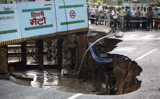 印度新德里遭遇暴雨 路面塌陷成坑(4)