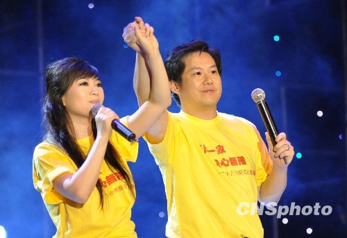 图为台湾歌手熊天平夫妇携手献唱。中新社发 李学仕 摄