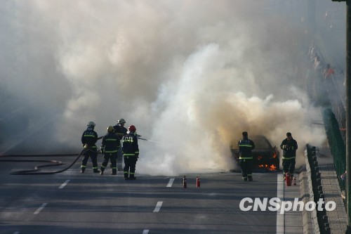 图:北京一轿车发生自燃引发交通拥堵(3)