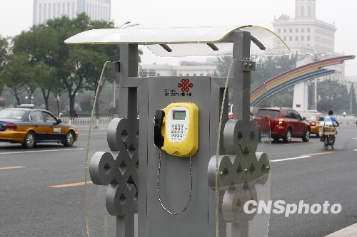 8月24日,大修后的北京长安街上,新更换的公共通信设施更加简洁。中新社发 郑雄增 摄