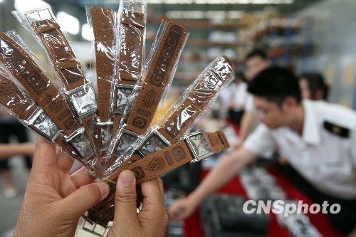 图为北京海关展示截获的侵权电子产品。中新社发 任海霞 摄
