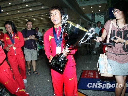 图:田径世锦赛马拉松金牌得主白雪抵京(2)
