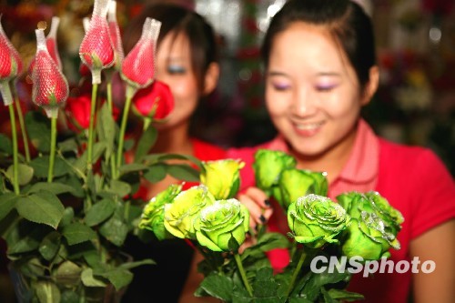 8月25日,北京青年人纷纷走进花店购买如意的鲜花,迎接“七夕”情人节的到来。中新社发 卜向东 摄