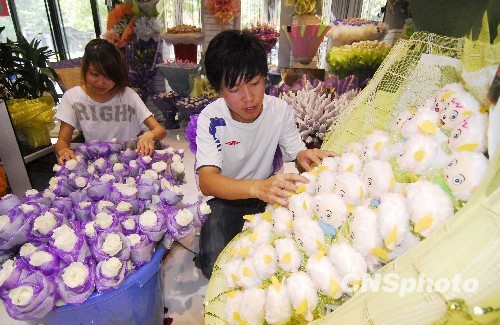 图:“七夕”将至 商家推出“喜羊羊”鲜花