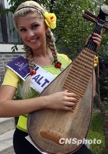 图为外国佳丽学习弹琵琶。中新社发 钱兴强 摄