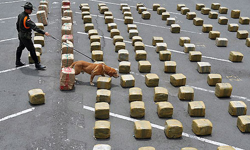 8月25日,在哥伦比亚西南部城市卡利,警方向媒体展示其缴获的至少2.8吨大麻。