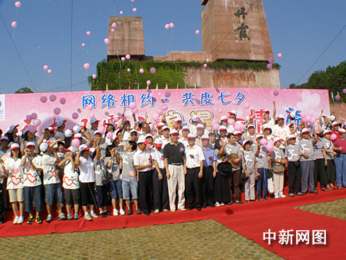 中新网韶关八月二十六日电(冯昶 袁少洪 郭世明 李正红) 今日是农历七月初七,中国民间传统的“七夕”情人节。来自全国各地的一百零八对情侣相聚广东丹霞山,共度七夕爱情之旅。