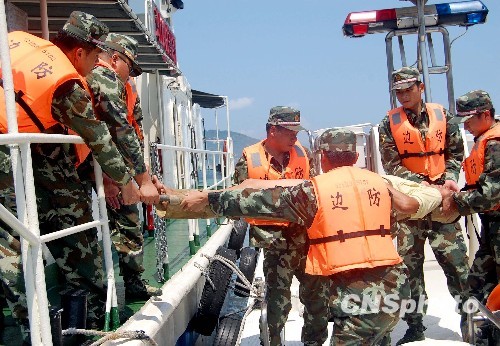 图为搜救人员将落水人员送到岸边。中新社发 王力鹏 摄