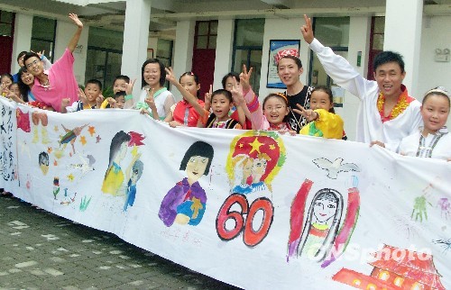 图:各族青少年共绘长卷庆祖国60华诞(2)