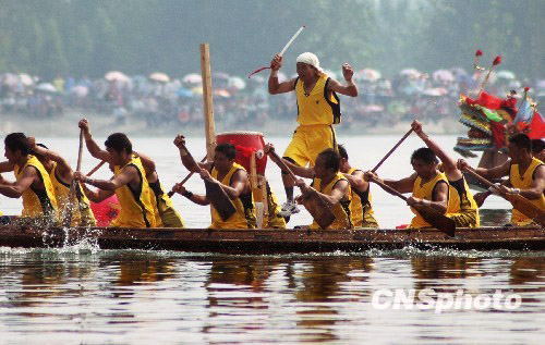 安徽省第二届龙舟大赛在宣城市向阳镇水阳江畔举办。中新社发 吴安亚 摄