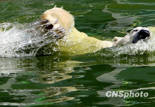 秋季的柏林艳阳高照气温一路走高,在世界最大的动物园--柏林动物园内的北极熊明星不时跃入水中降温,并展示高超的自由泳“熊姿”。随着全球气候的变暖,生活在北极的北极熊等野生动物的命运堪忧。中新社发 任晨鸣 摄