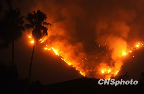 图:洛杉矶周边爆发多处山火 数百户居民紧急撤离(2)