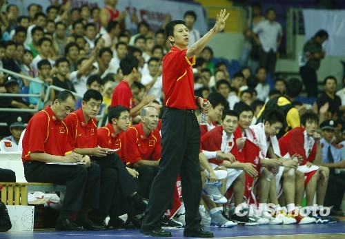 图为在中国对阵安哥拉的比赛中,中国队主教练郭士强在场边指挥。中新社发 杜洋 摄