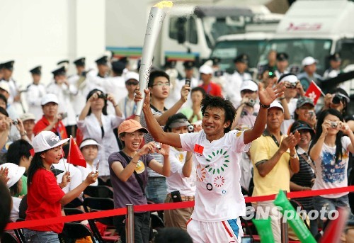图为火炬传递首棒——香港单车手黄金宝。中新社发 洪少葵 摄