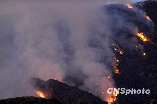 洛杉矶附近的山火继续肆虐,至今过火面积已超过两万英亩。中新社发 张炜 摄