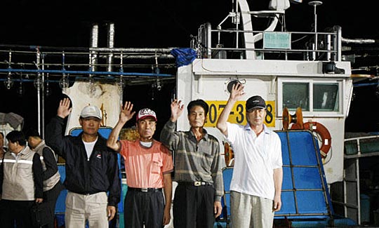 图:朝鲜释放扣留的韩国渔船和4名渔民(2)