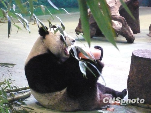 图:大熊猫圆圆5岁生日大快朵颐冰蛋糕(2)
