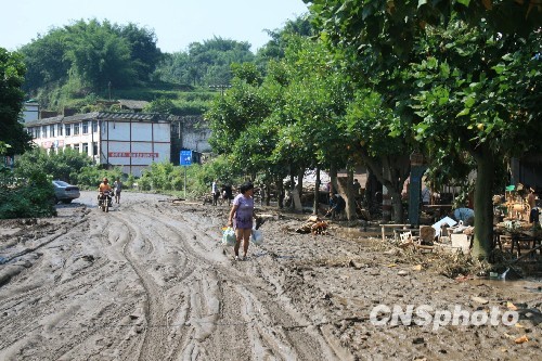 8月30,民众走在洪水退去的街道上。中新社发 曾朗 摄