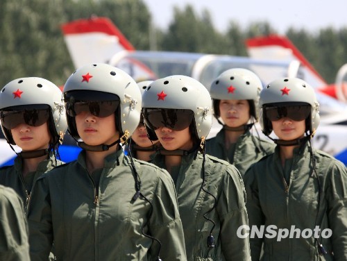 中国空军首批歼击机女飞行员更换新型飞行装具。中新社发 张雷 摄