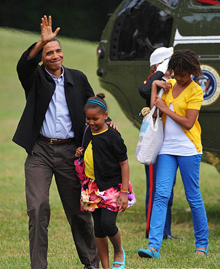 图:美国总统奥巴马一家结束休假(3)