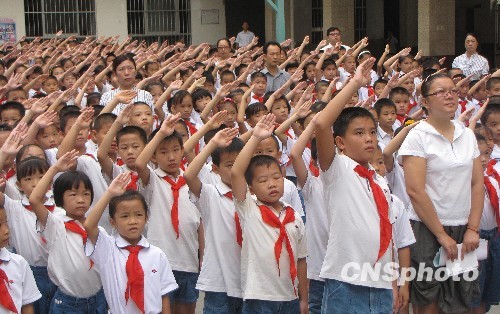 8月31日是广西南宁市中小学开学的第一天,为了让孩子们对校园生活有一个崭新的认识和开始,各学校都开展了各种有意义的开学典礼,在教育与帮助的主题下使孩子们得到了人生的新体验。最近几日,中国各地的中小学都陆续开学。中新社发 罗劲梅 摄