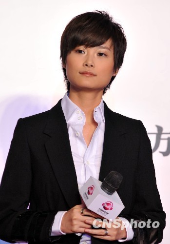 图为李宇春以一件黑色小西帅气亮相。中新社发 李学仕 摄