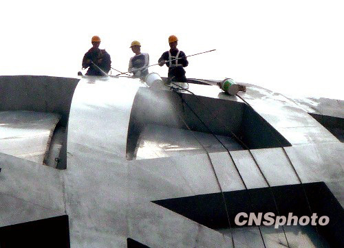 组图:鸟巢“洗脸” 喜迎国庆(3)