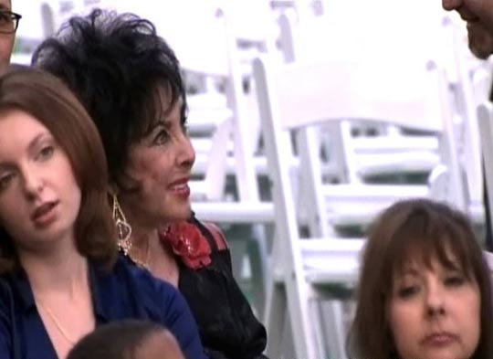 好莱坞影星伊丽莎白·泰勒(左二)在加州林茵纪念公园墓园参加迈克尔·杰克逊的葬礼。