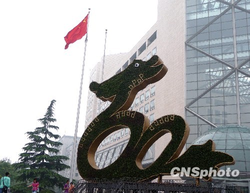 9月4日,一组由阿拉伯数字60构成的“龙形”立体花坛亮相北京长安街,喜迎新中国60周年国庆的到来。 中新社发 玉龙