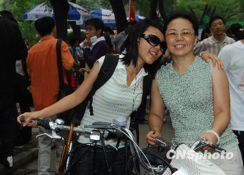 9月5日上午,北京大学社会学系研究生院新生彭祎丽(左)和妈妈在一起。彭妈妈是北大法律系研究生,如今母女二人成为燕园校友。中新社发 侯宇 摄