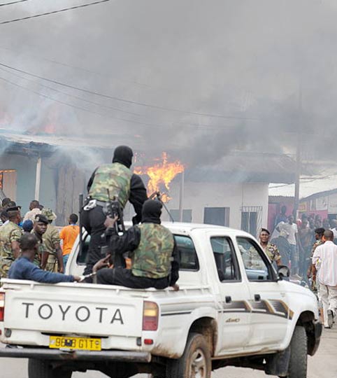 9月4日,加蓬警察在首都利伯维尔发生骚乱的街头巡逻。3日,加蓬内政部宣布执政的加蓬民主党总统候选人阿里·邦戈赢得了总统选举后,加蓬部分地区发生骚乱。
