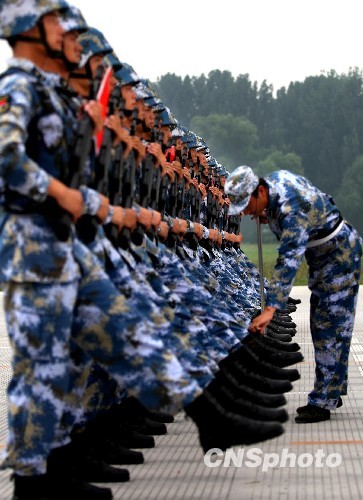 9月3日,北京郊区阅兵村的官兵正在加紧训练。 中新社发 宋吉河 摄