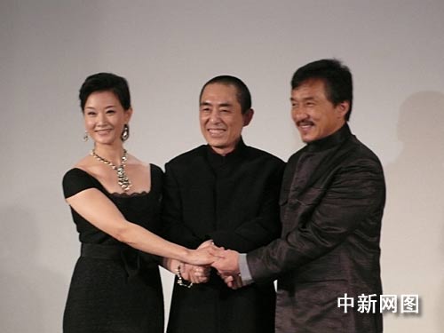 宋祖英、张艺谋、成龙共同祝愿演出成功。阮煜琳摄