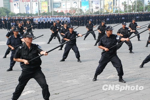 图为警员在表演应急棍术。中新社发 周利朔 摄