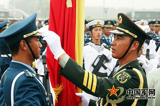 三军仪仗队曾被中央军委授予“军旅标兵”荣誉称号;2008年该部被党中央、国务院表彰为“北京奥运会、残奥会先进集体”。 张雷 摄