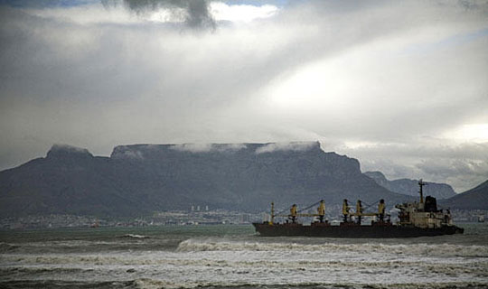 9月8日,在南非开普敦附近海域,一艘货轮搁浅在海滩上。据救援人员说,这艘77米长、在巴拿马注册的货轮因恶劣天气而搁浅,船上25名土耳其船员获救。