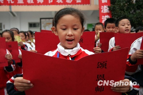 图为千名小学生“颂恩师”活动现场。中新社发 吉 喆 摄
