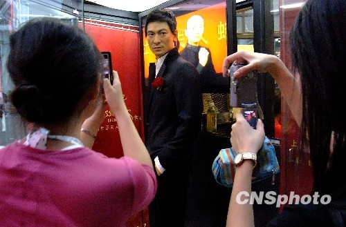 2009年9月8日,上海新世界商城10楼的杜莎夫人蜡像馆,将刘德华蜡像放置到南京路步行街上,引起游客与“华仔”热烈合影的热潮。中新社发 蒋振雄 摄